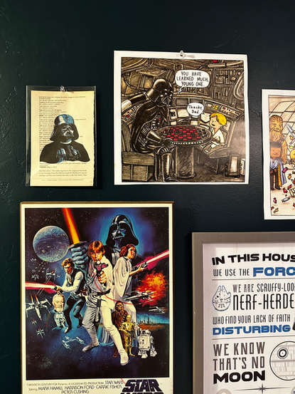 My husband is a huge fan of Star Wars, Batman, Lord of The Rings, Spiderman and more. I wanted to show off his love of entertainment in a cohesive modern way and so I went to some of my go to art sources to find art for the walls. Here are more of my go to art sources if you're on the hunt! (Art Sources for Less - Blog Post)